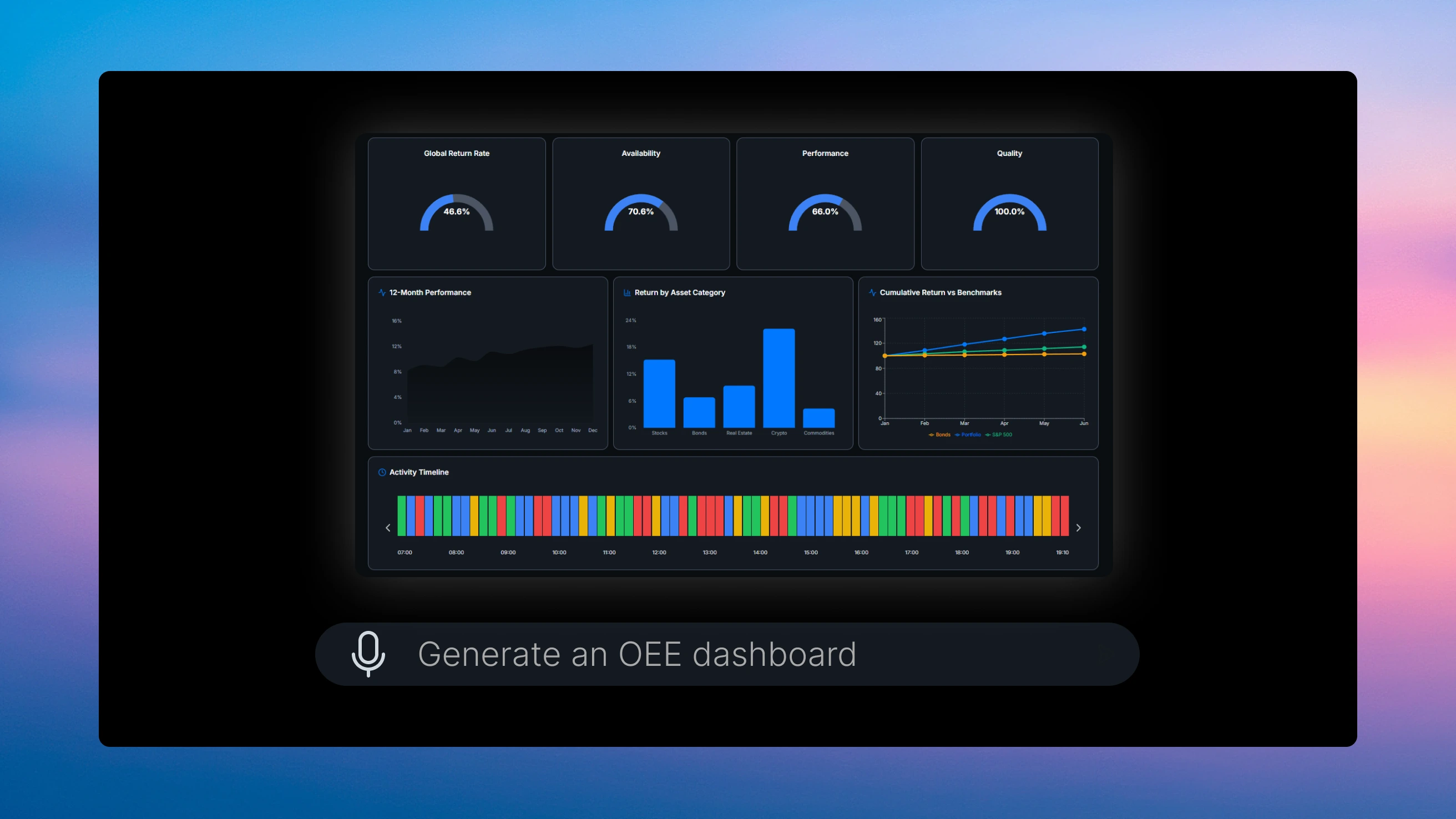 AI agents interpret the types of data received and automatically adjust the visualization (charts, gauges, key indicators).