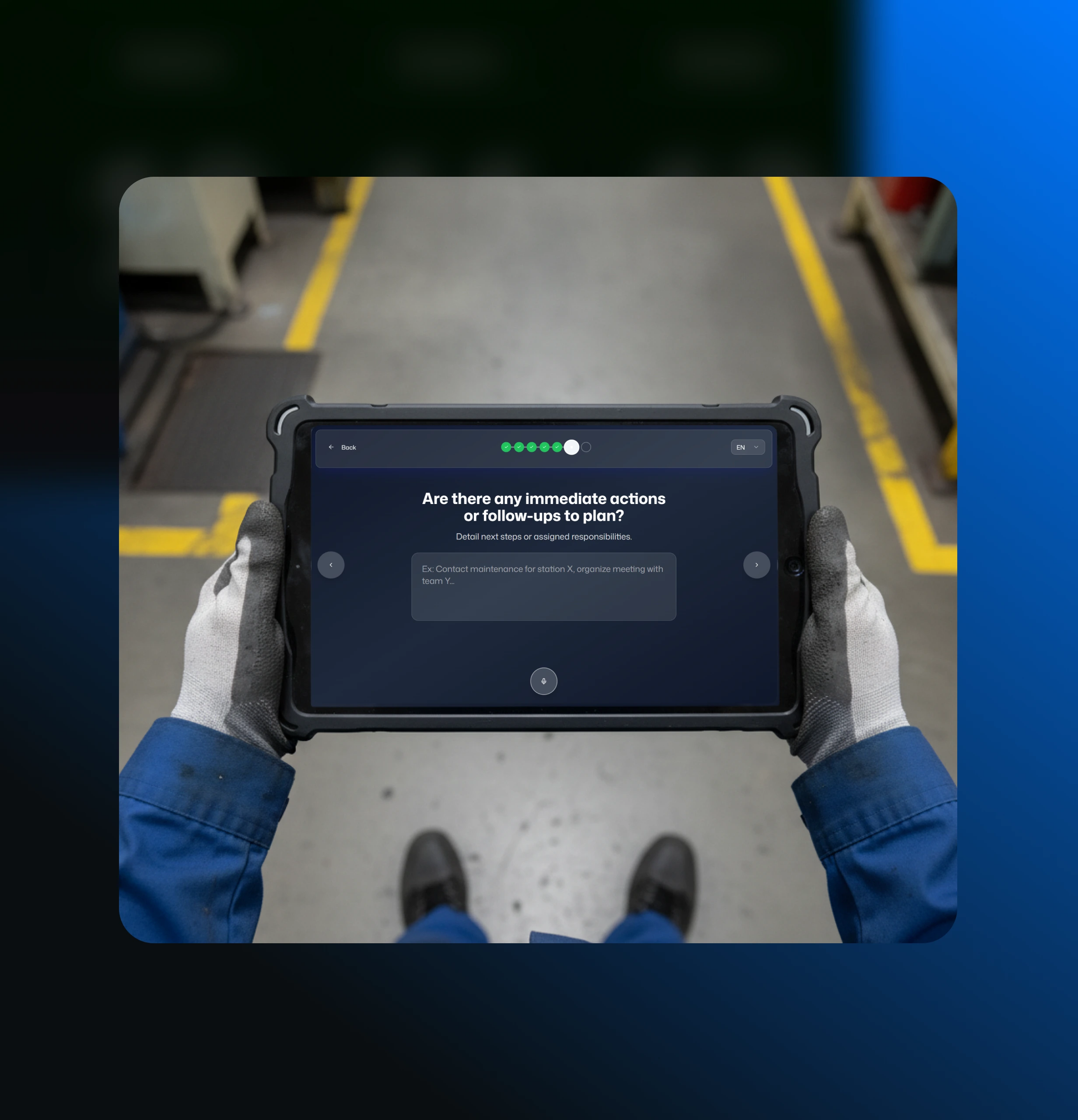 Simplify data entry for all your operators, even without digital skills. Respond by voice or with large visual buttons on a tablet, reducing errors and making data collection fast and enjoyable.
